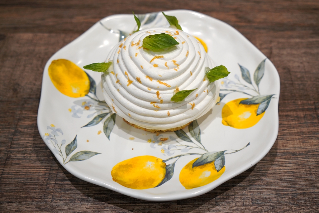 6. Dolce Limone (290++ THB) [15/20] – ทาร์ตเลม่อนแป้งขนมปังชอร์ตเบรดหน้าซอร์เบต์เลม่อนและครีมเลม่อนโหระพาท็อปด้วยเมอแรงค์กรอบ
