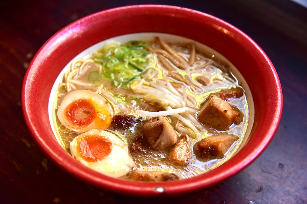 1. Yuzu Tonkotsu (11.4+ GBP) – ราเมนซุปกระดูกหมูที่ตุ๋นนานถึง 20 ชั่วโมงเติมรสชาติความอร่อยด้วยพริกส้มยูสุและท็อปปิ้งอย่างไข่ต้มและหมูชาชูกรอบ