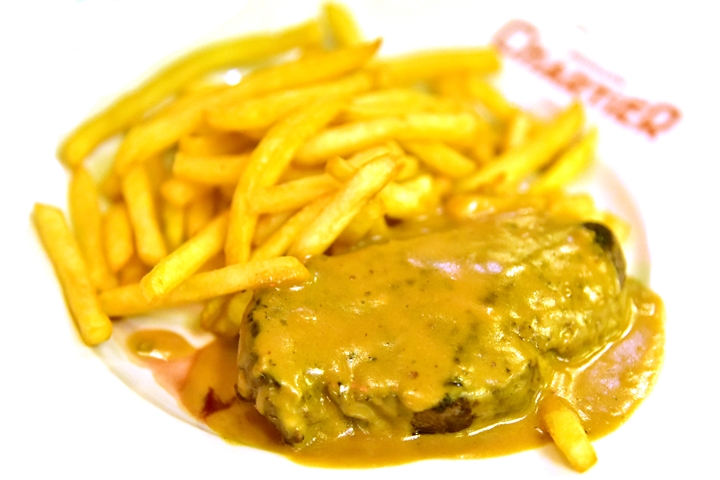 5. Rump Steak with Pepper Sauce & Fries (11.50 EUR)