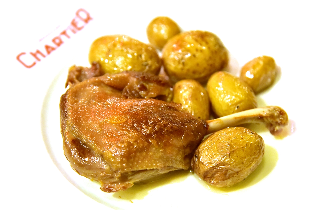 4. Duck Confit with Baby Potatoes (10.50 EURO) – ขาเป็ดกงฟีเนื้อนุ่มหอมอร่อยเสิร์ฟคู่กับมันฝรั่งอบเนย นี่คือเมนูที่ห้ามพลาด !!