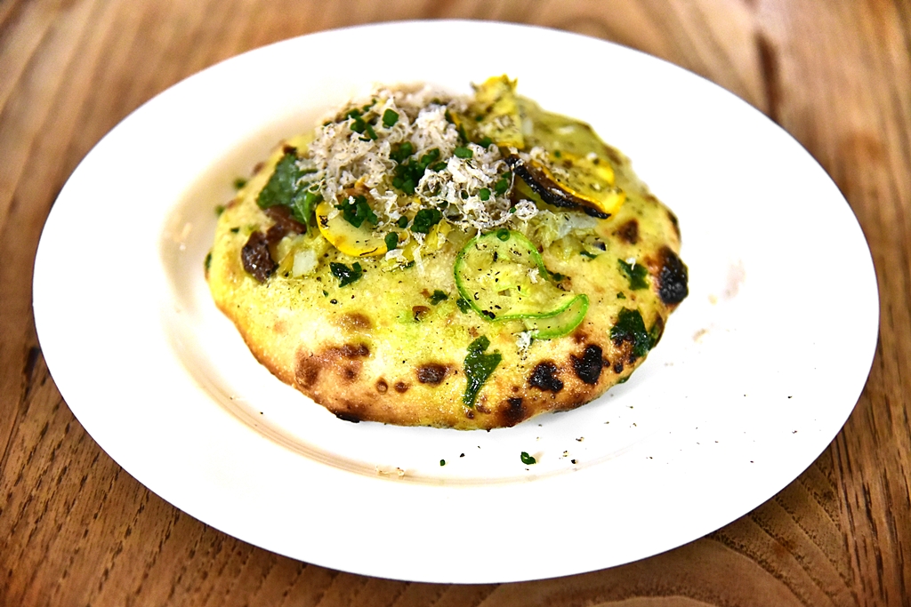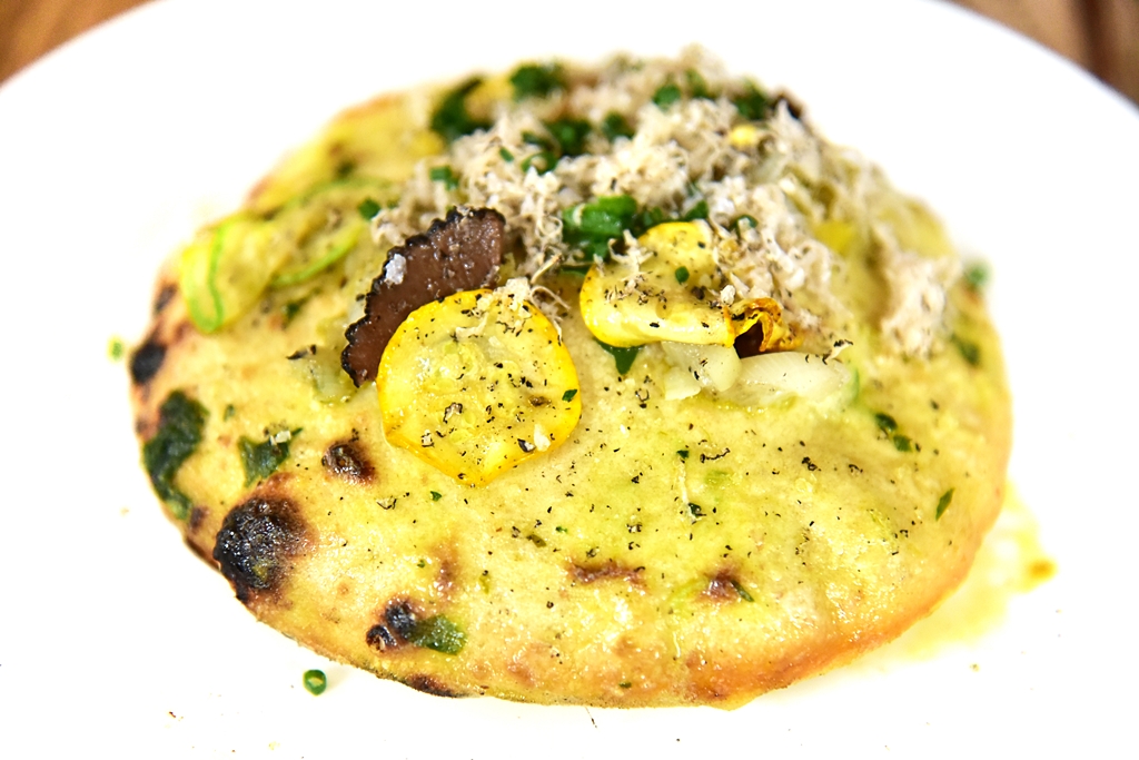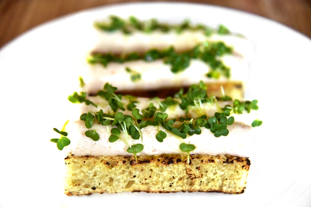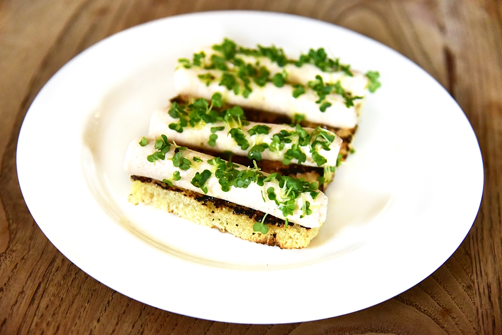 3. Grilled Bread with Wild Garlic and Summer Truffle (10 GBP) – ขนมปังย่างเนื้อนุ่มหอมหน้ากระเทียมป่าและเห็ดทรัฟเฟิล