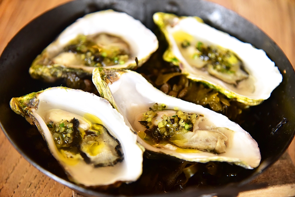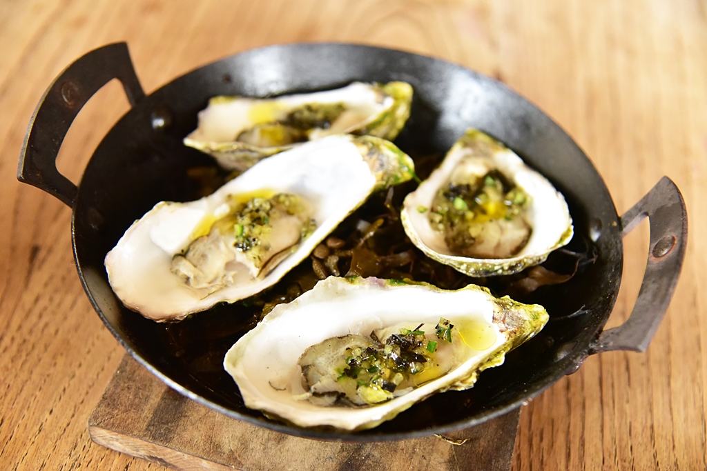 2. Oysters Roasted with Seaweed (14 GBP) – หอยนางรมย่างในเปลือกเสิร์ฟกับสาหร่าย ตัวหอยสดมาก แต่แอบเค็มเกินไปหน่อย
