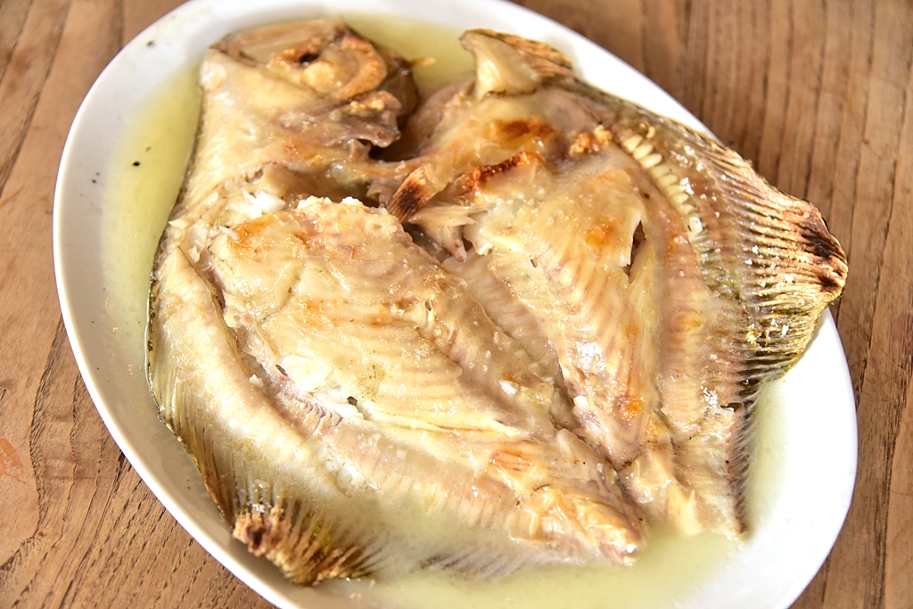 6. Whole Turbot (85 GBP) – ปลาตาเดียวย่างไฟแบบทั้งตัวที่เป็นเมนูสร้างชื่อของร้าน BRAT ซึ่งโดยรวมแล้วถือว่าทำได้ดีมากๆ ทั้งส่วนของเนื้อที่ขาวเนียน ส่วนของหนังที่นุ่มหยุ่นและส่วนของครีบที่มีทั้งความกรอบและความมัน เสียดายน่าจะมีน้ำจิ้มให้ทานคู่กันซักหน่อย