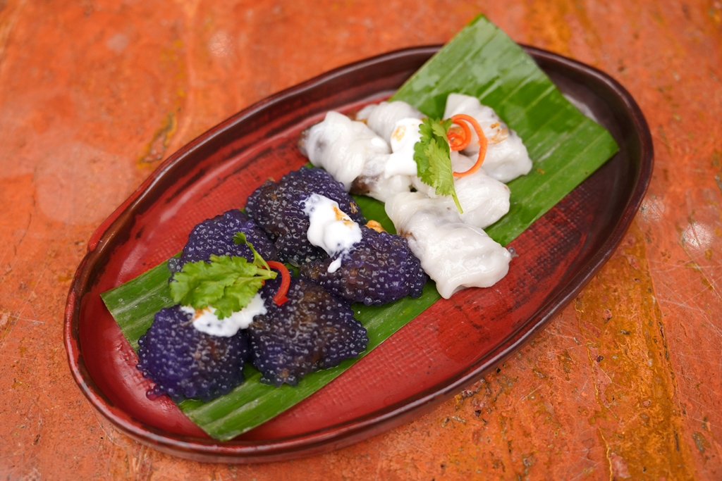 1. Thai Rice Crepes and Butterfly Pea Sago (165++ THB) [14/20] – ข้าวเกรียบปากหม้อและสาคูอัญชันที่ต่างก็สอดไส้หมูรสหวานกลมกล่อม ตัวแป้งหนึบเด้งถูกต้อง