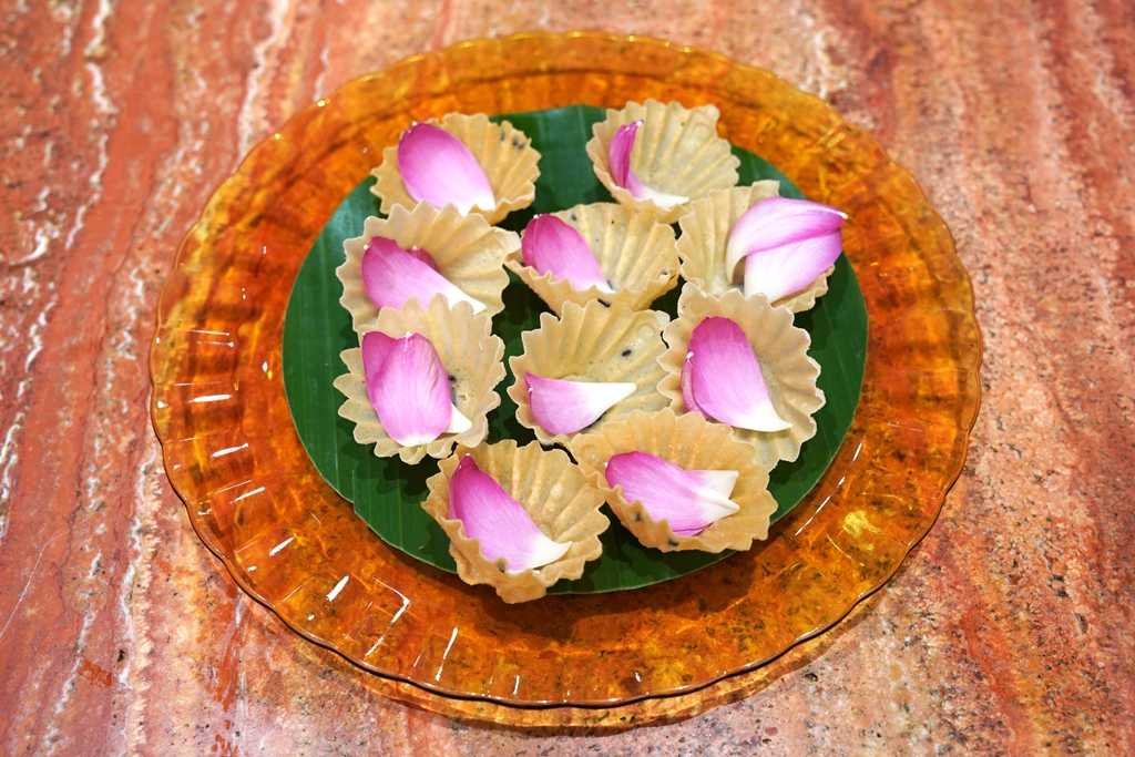 3. Golden Krathong with Miang Som Set (280++ THB) [15/20] – “เมี่ยงส้มกระทงทอง” กระทงทองใบบัวเสิร์ฟกับเซ็ตเมี่ยงคำส้มโอแบบครบเครื่อง