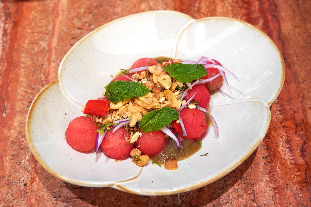1. Spicy Watermelon Salad (240++ THB) [16/20] – “ซ่าแตงโม” ยำแตงโมปรุงรสแบบเปรี้ยวๆหวานๆสดชื่นแบบเบาๆ ยำของ Bura Marie รสชาติถูกต้องมากจริงๆ
