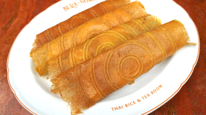 8. Crispy Coconut Roll with Coconut Cream (135++ THB) [17/20] – ทองม้วนสดกรอบที่ทำสดใหม่จานต่อจานหอมๆกรอบๆสอดไส้ครีมมะพร้าวและเนื้อมะพร้าวที่อร่อยเข้ากันมากๆ ถือเป็นเมนูราคาน่ารักๆที่ชนะเลิศเลย