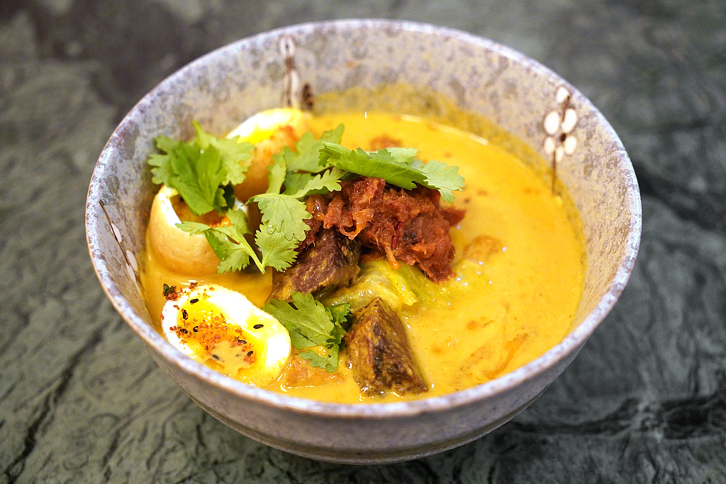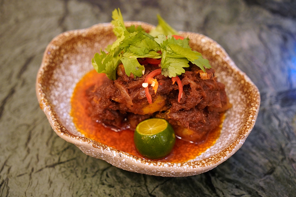 9th course : Beef Lontong Chap Goh Meh, Margaret River beef cheek cooked with lontong sauce, fried tau kwa, tempeh, Beijing cabbage, Frenz organic soft-centered egg, ikan bilis sambal [14/20] – แกงลนตงกับเนื้อแก้มวัวนุ่มๆเสิร์ฟพร้อมกับเต้าหู้ทอด ไข่มะตูมและน้ำพริกซัมบัล