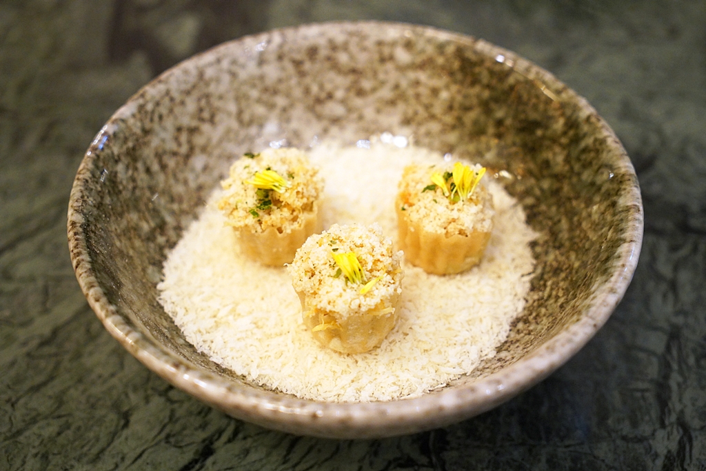 1st course : Homemade Kueh Pie Tee Shell, Blue Swimmer Crab, Turmeric Curry [16/20] – ทาร์ตเนื้อปูม้าหวานฉ่ำกับแกงขมิ้นสไตล์เปอรานากันที่เอาเข้าจริงแล้วคือคอร์สที่อร่อยที่สุดในมื้อเลย เปิดมาได้อย่างดีงามมาก