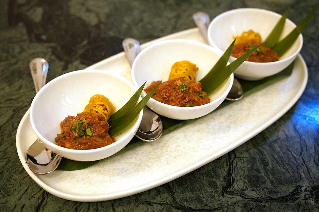 2nd course : Roti Jala, Maimoa Lamb Kapitan Curry, Kaffir Lime Leaf [13/20] – โรตีม้วนเนื้อนุ่มๆเสิร์ฟกับแกงกะหรี่แกะรสชาติเข้มข้นและเผ็ดพอประมาณพร้อมด้วยใบมะกรูด