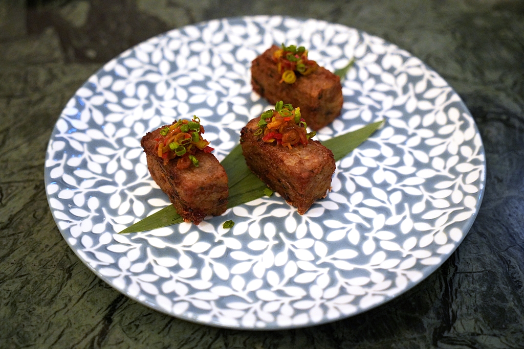 3rd course : Candlenut’s Yam Cake, Dried Scallops, Sakura Ebi, Sweet Soy Sauce [13/20] – ขนมเค้กมันเทศที่คล้ายๆขนมผักกาดที่เติมความอูมามิด้วยหอยเชลล์ตากแห้งและกุ้งจิ๋ว