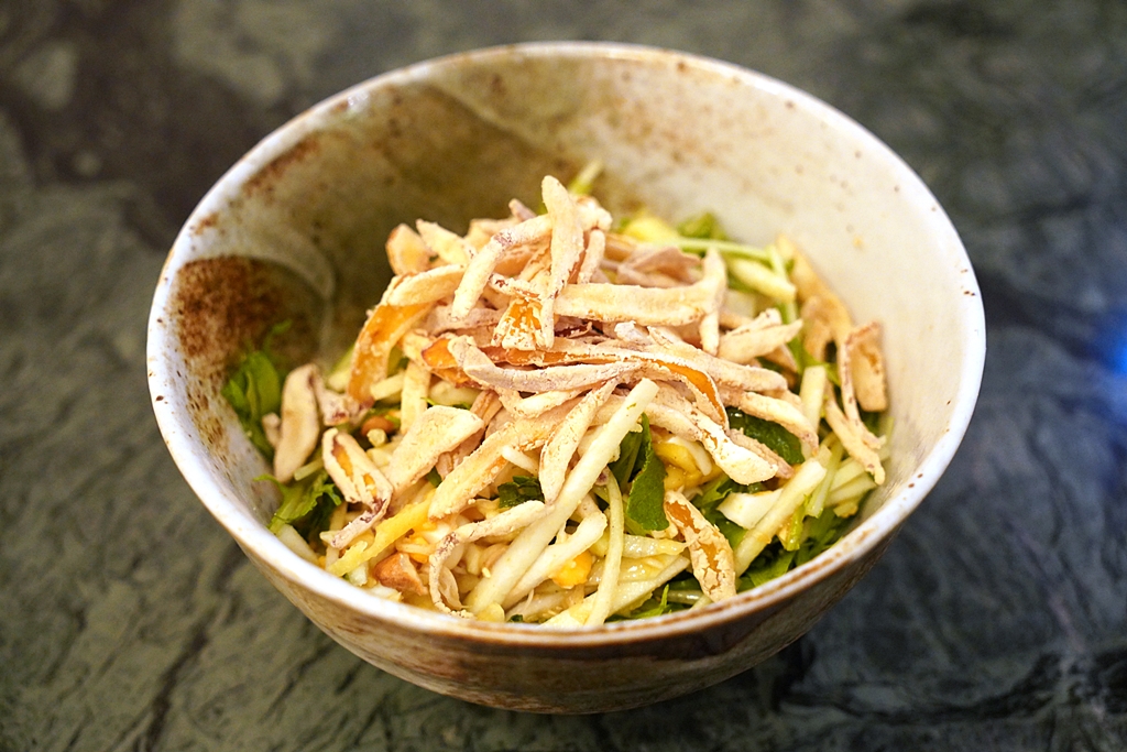6th course : Salad Sedap, Chitose x Cameron Highland sweet corn, mizuna, guava, fresh mint, honey pineapple, fried jackfruit, roasted cashew nut,  lemongrass with homemade sour plum dressing [14/20] – สลัดสไตล์เปอรานากันที่จัดเต็มด้วยวัตถุดิบแบบครบรส ตั้งแต่ ข้าวโพดหวาน ฝรั่ง ใบมิ้นต์ สับปะรัด ขนุนทอด เม็ดมะม่วงหิมพานต์และตะไคร้ในน้ำสลัดบ๊วยรสเปรี้ยวสดชื่น