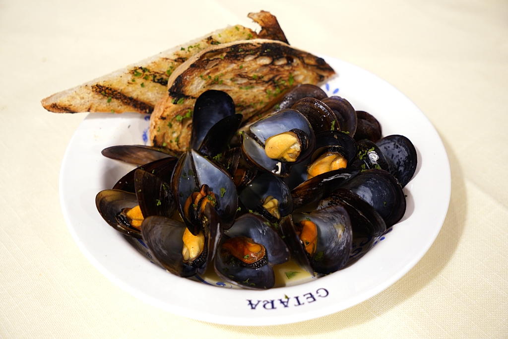 3. Mediterranean Mussels Sauteed with Wine and Black Pepper (460++ THB) [16/20] – หอยแมลงภู่จากทะเลเมดิเตอร์เรเนียนในซอสไวน์และพริกไทยดำเสิร์ฟพร้อมกับขนมปังซอร์โดว์ปิ้ง ตัวหอยนุ่มฉ่ำ ตัวซอสอร่อยอูมามิมาก