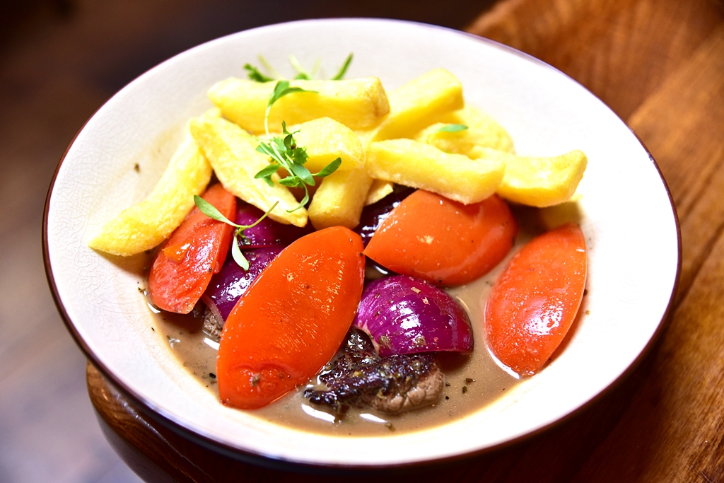 5. Lomo Saltado, wok cooked marinated beef fillet, proper chips (18+ GBP) – สุดยอดเมนูของ Ceviche Soho ที่ประกอบด้วย เนื้อหมักย่างแบบมีเดียมแรร์เสิร์ฟในซอสจูซรสชาติเข้มข้นกลมกล่อมเพอร์เฟ็คมากๆๆๆๆๆ ทานคู่กับมะเขือเทศ หอมแดงและมันฝรั่งทอด