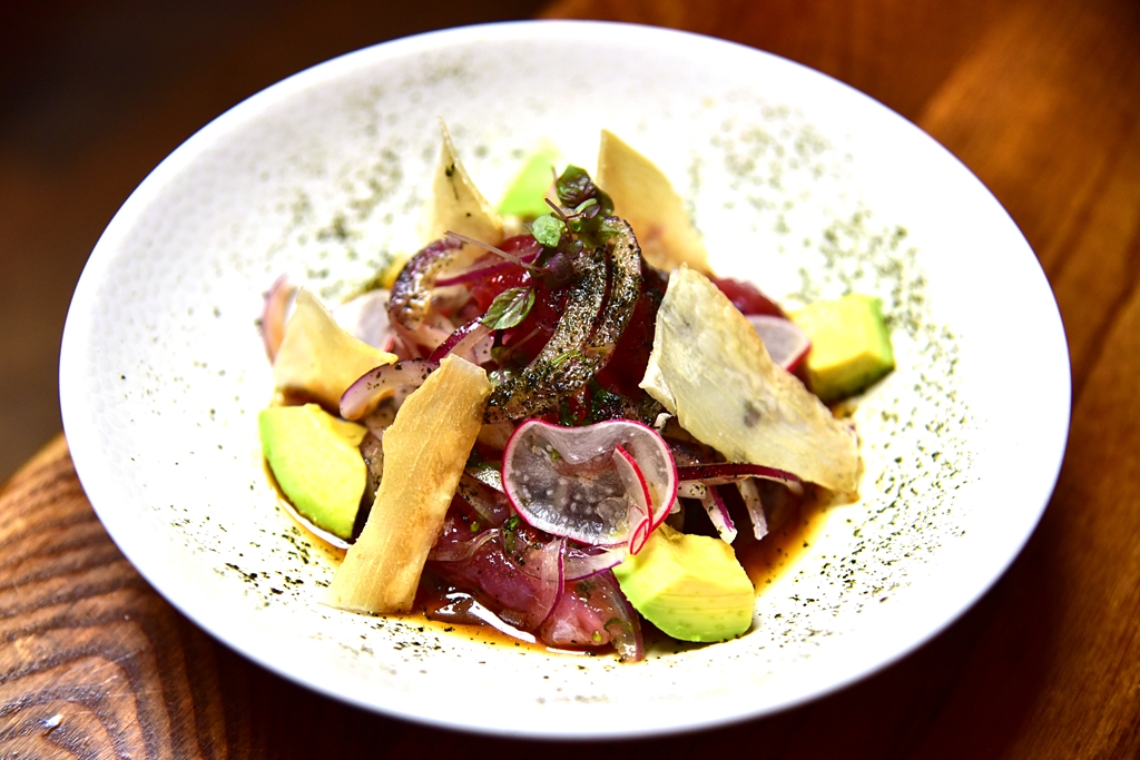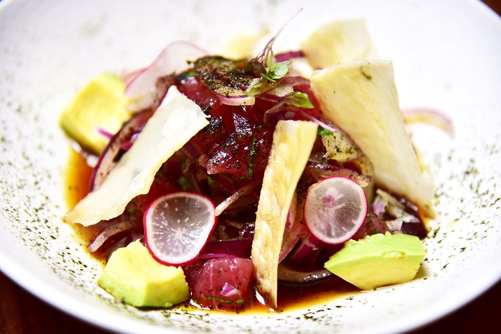 4. Tuna Nikkei Ceviche (9+ GBP) – เซวิชเช่ปลาทูน่าเนื้อแดงสไตล์ “นิกเกอิ” ที่มีส่วนผสมของญี่ปุ่นและเปรูด้วยการนำเอาเซวิชเช่มาหมักรวมกับซอสโชยุรสชาติเข้มข้น จานนี้จะออกเค็ม คนชอบโชยุน่าจะชอบครับ
