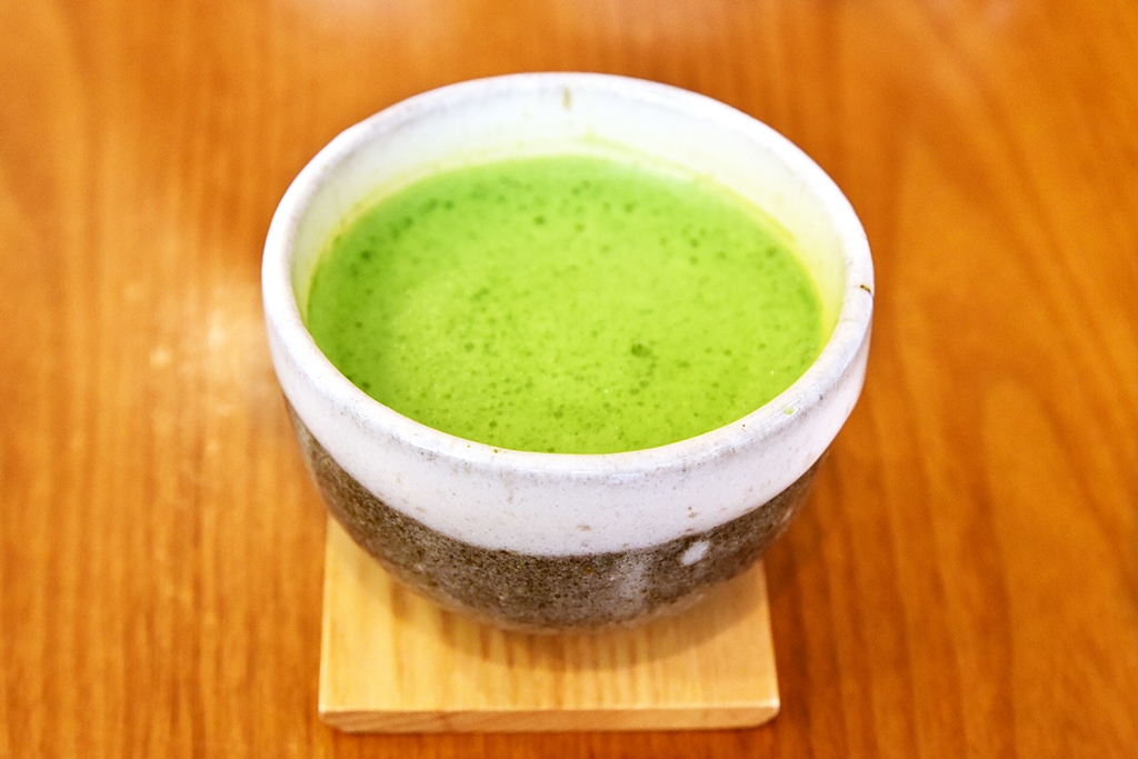 2. Matcha Cheesecake with Matcha Set (1,700 Yen) – ชีสเค้กมัตฉะรสชาติหอมมันเข้มข้นทานคู่กับมัตฉะร้อนรสเข้มข้นไม่แพ้กัน