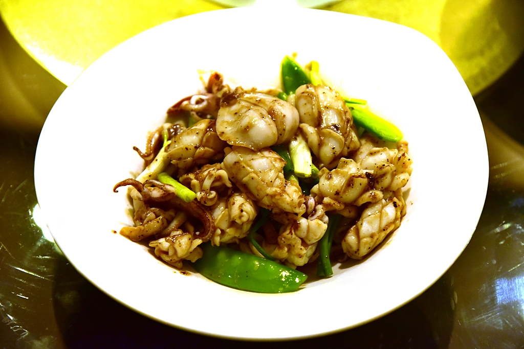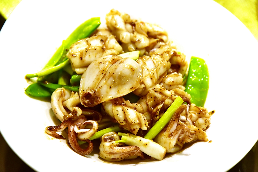 2. Squid in Titi-style Sauce (72 Sol) – ปลาหมึกผัดพริกไทยดำกับต้นหอมและถั่วลันเตา