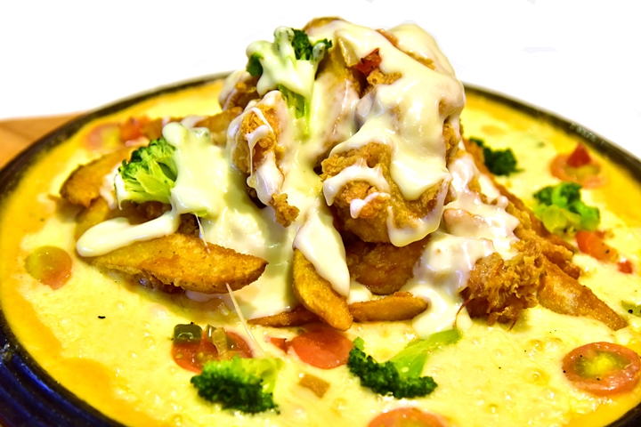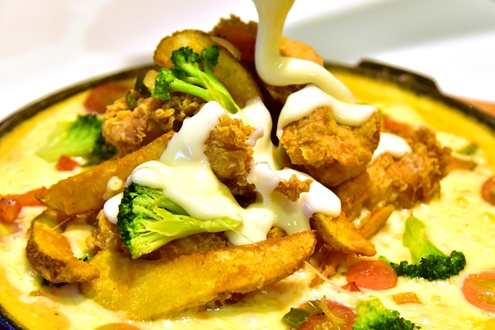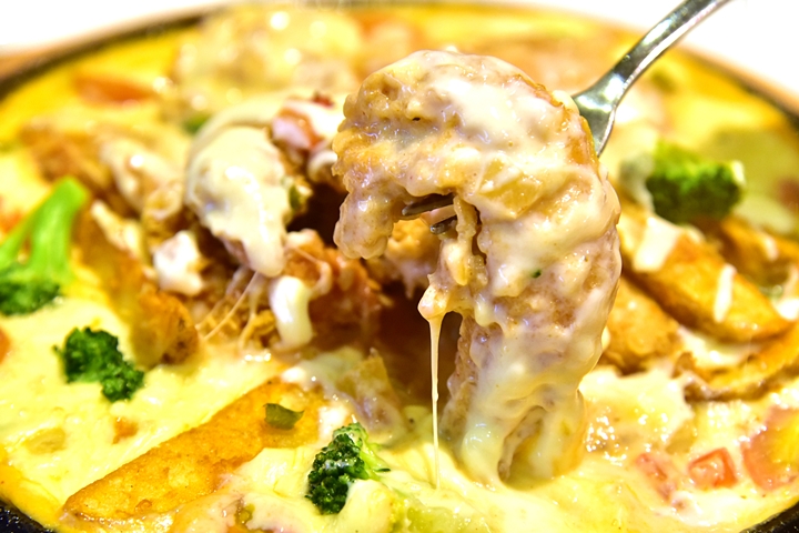 1. Rose Cheese Chiqueen (32.90 SGD) – ไก่ทอดสไตล์เกาหลีและมันฝรั่งทอดกระทะร้อนราดซอสฟองดูมอสซาเรลล่าชีสแบบจุใจ คอชีสนี่น่าจะฟินกันไปตามๆกัน