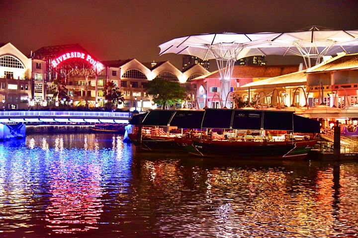 แสงสีของ Clarke Quay ยามค่ำคืน