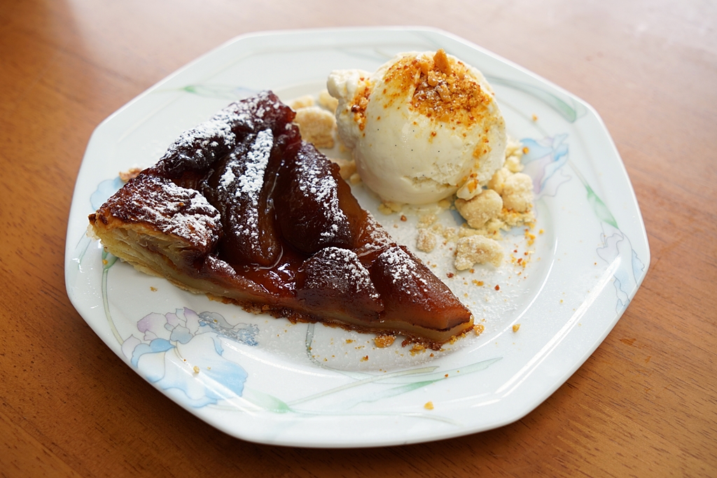 7. Apple Tarte Tatin (240++ THB) [14/20] – ทาร์ตตาแตงแอปเปิ้ลเนื้อแป้งกรอบเบาเสิร์ฟคู่กับไอศกรีมวานิลลาและครัมเบิ้ล เมนูนี้ส่วนตัวชอบมากเลยครับ ทุกอย่างอร่อยเข้ากันดีงามตามที่คาดหวังไว้