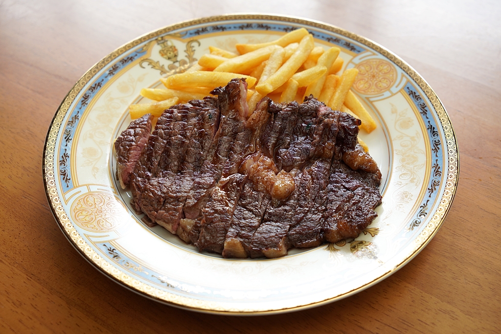 6. Ribeye Steak (990++ THB) [13/20] – สเต็กเนื้อริบอายขนาด 250 กรัมเสิร์ฟกับเฟรนช์ฟรายส์และซอสแบร์เนส