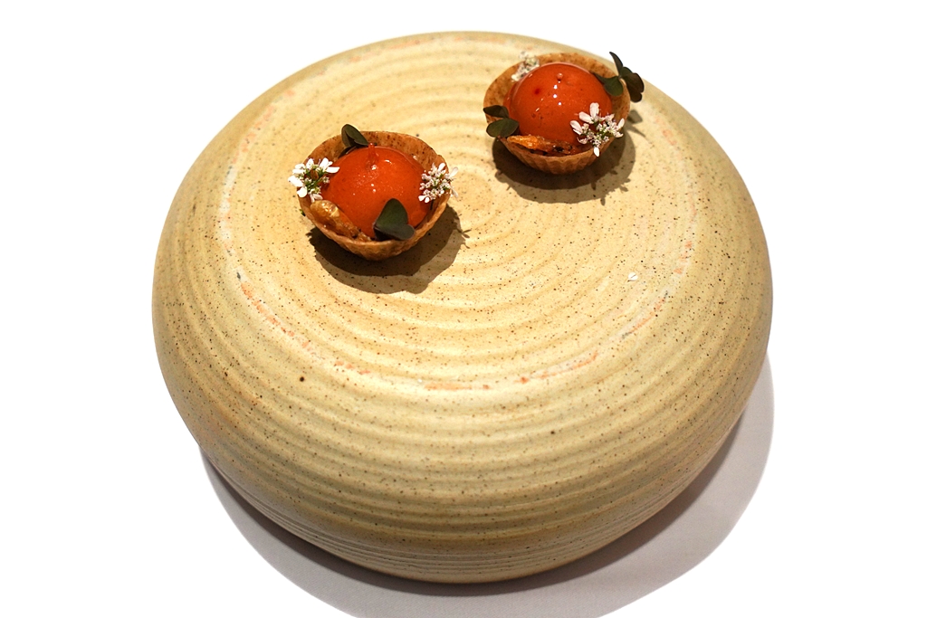 1st course : Smoked Fish Mousse [16/20] – มูสเนื้อปลาแฮริ่งรมควันเสิร์ฟกับน้ำมันสมุนไพรและพริกเขียวบนทาร์ตสาหร่ายพร้อมด้วยไข่ปลาคาเวียร์ที่การันตีความอูมามิแบบเต็มๆ