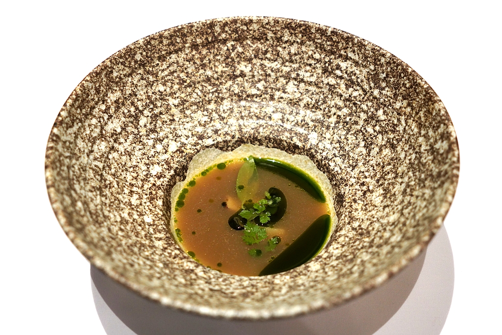 4th course : Basil Soup [15/20] – ซุปหอยตลับและใบโหระพารสชาติกลมกล่อมหอมกรุ่นเสิร์ฟพร้อมกับเนื้อหอยเชลล์ฮอกไกโด
