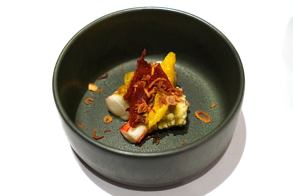 Add-on course : Curry Crab Chawanmuchi (600++ THB) [18/20] – ไข่ตุ๋นน้ำซุปปูเสิร์ฟพร้อมกับคีนัวร์ทอดกรอบ เนื้อปูม้า ซอสผัดผงกะหรี่และไข่ปลาคาเวียร์ เมนูนี้เป็น add-on ที่ขอบอกเลยว่า “ต้องสั่ง” ครับ !!