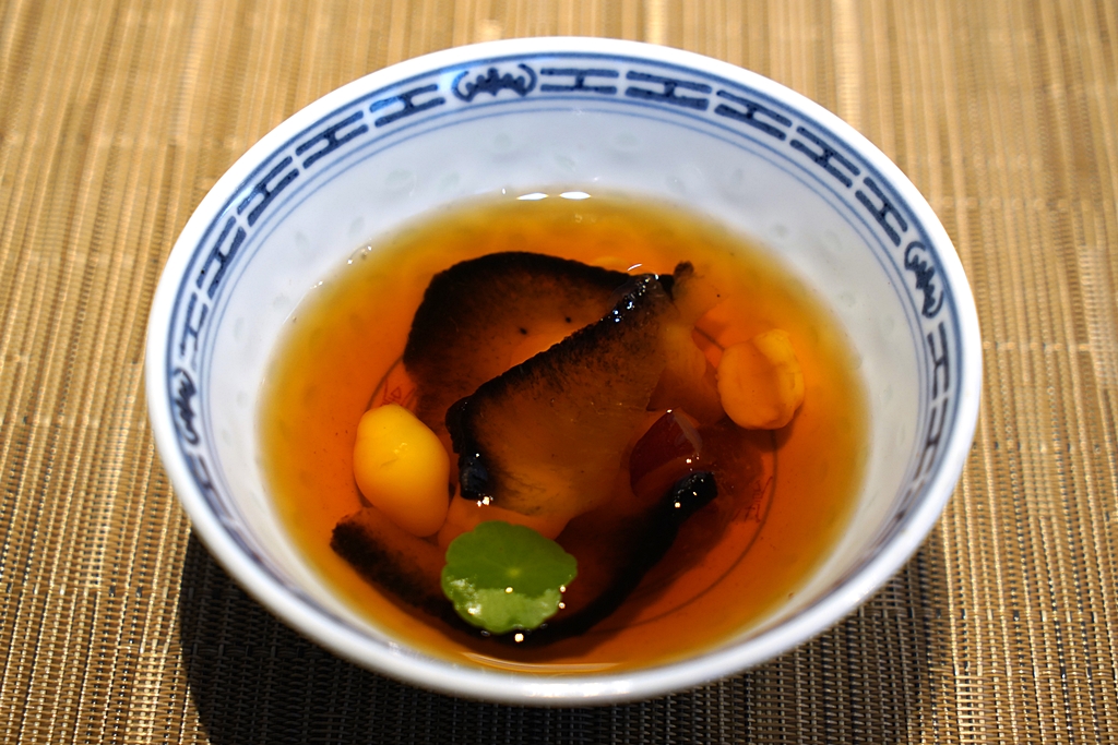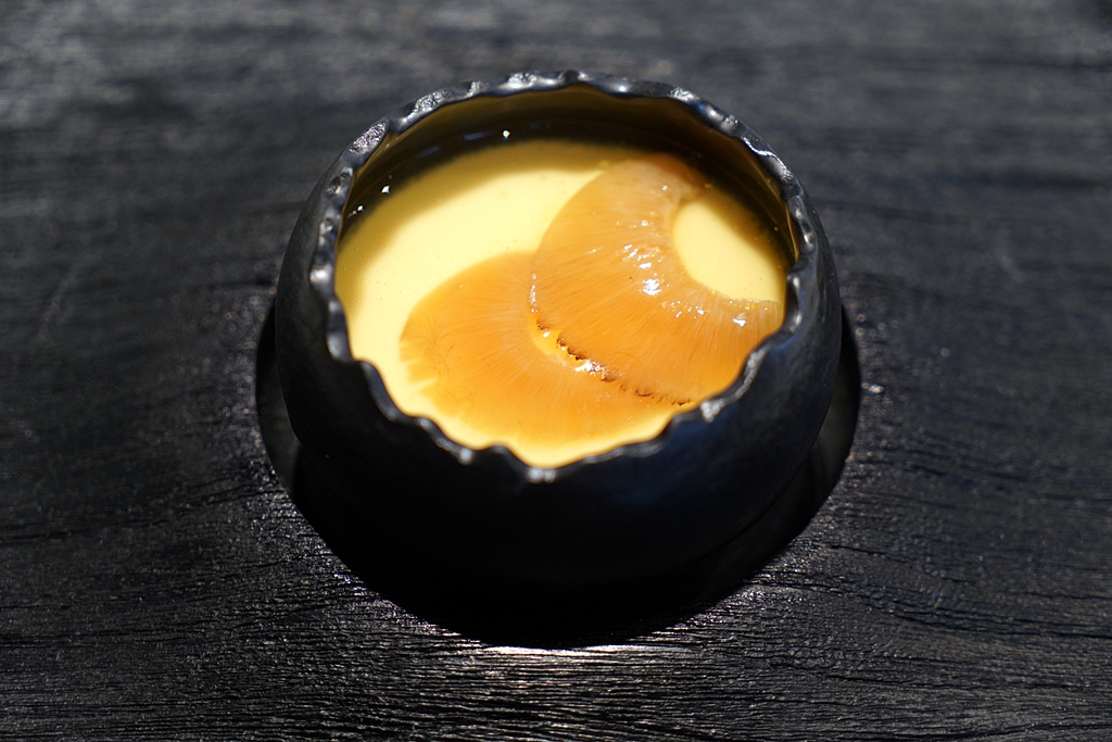 1st course : Steamed Egg with Shark Fin [16/20]ไข่ตุ๋นหูฉลามเสิร์ฟคู่กับซุปใสแบบ double boiled เติมรสชาติด้วยเห็ด เมนูนี้มีความอูมามิซึมทราบไปทั่วทั้งตัวไข่และหูฉลาม