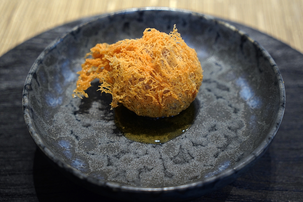 2nd course : Taro Puff with Goat Stew [15/20]เผือกทอดไส้แพะตุ๋นยาจีนเสิร์ฟกับซอสบ๊วยและขิง โดยเผือกทอดจะมีความกรอบเบาคล้ายๆกับคร็อกเก็ตแบบฝรั่งเศส