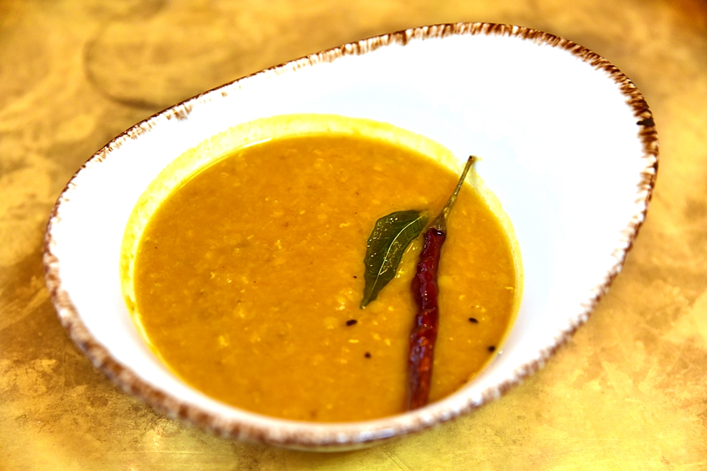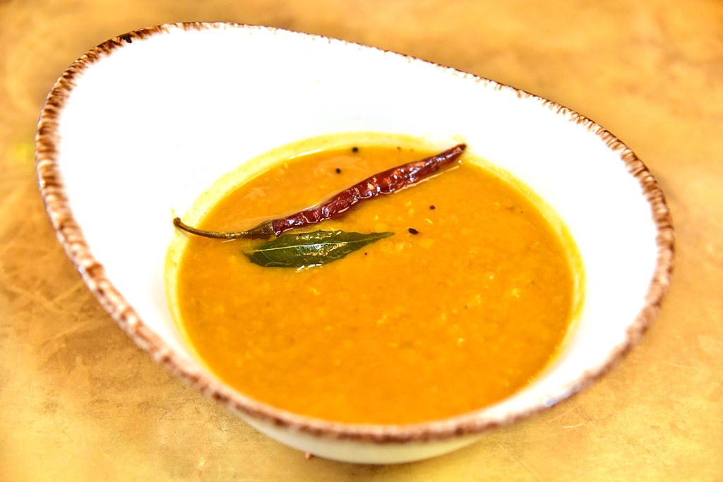 6. Hyderabadi Tamarind Dal (6.0 GBP) – แกงถั่วเลนทิลสไตล์เมืองไฮเดอราบัดที่จะมีรสสัมผัสค่อนไปทางซุปข้นๆรสออกเค็มๆมันๆ