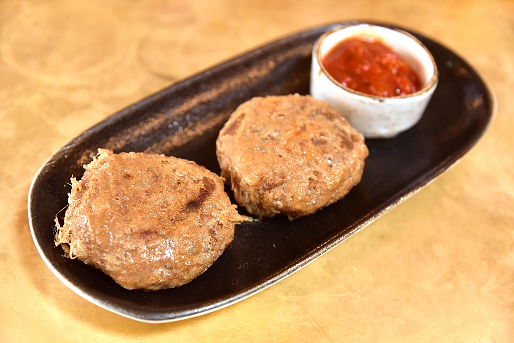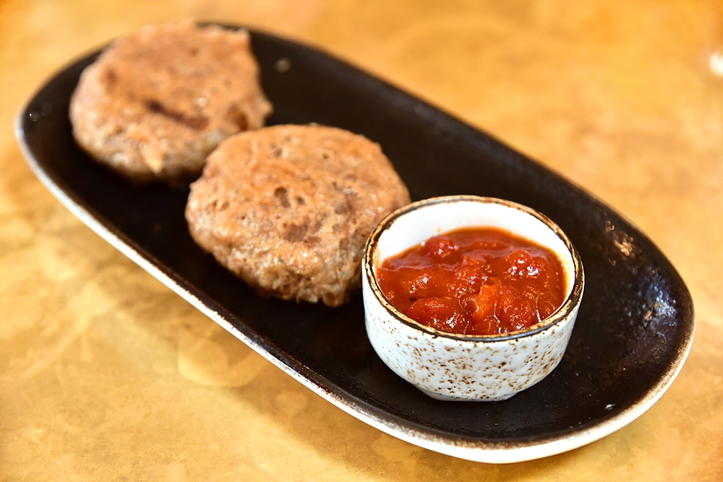 3. Mutton Shikampuri Kabab (7.5 GBP) – เนื้อแกะสับปั้นเป็นก้อนกลมสอดไส้ด้วยโยเกิร์ตทอด เสิร์ฟคู่กับซอสมะเขือเทศรสหวานเข้ากันได้อย่างลงตัว