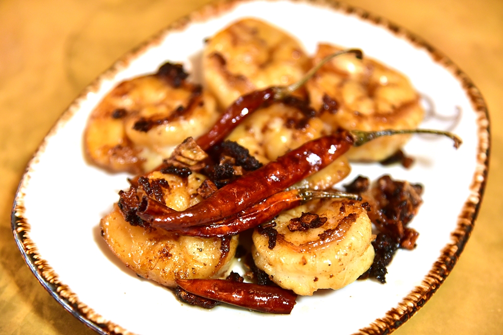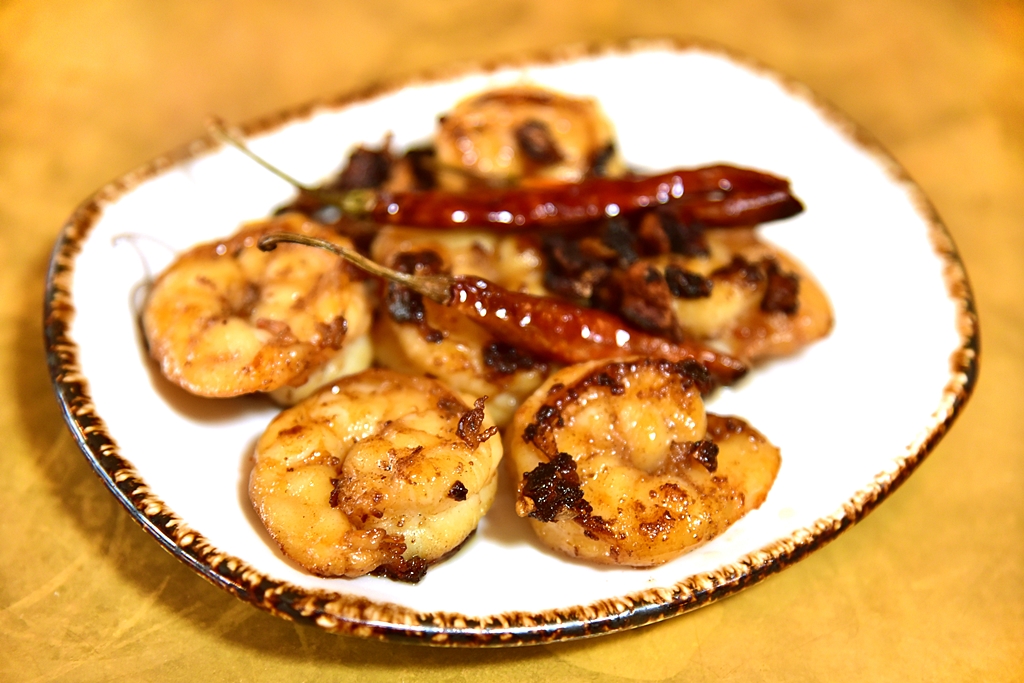 1. Tangra Chilli Garlic Prawns (8.0 GBP) – กุ้งสดเนื้อหวานกรอบผัดกับกระเทียมพริกไทยรสชาติจัดจ้านอร่อยล้ำ