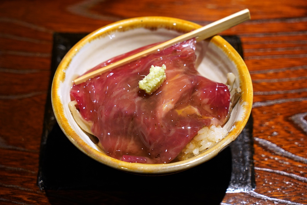 7th course : Clay Pot Rice | Maitake Mushroom | Beef [17/20] – ข้าวหุงเห็ดไมตาเกะหอมๆร้อนๆเสิร์ฟคู่กับเนื้อวากิวคาร์ปาชโช่ที่เสิร์ฟมาแบบดิบๆลวกในน้ำซุปร้อนๆเพียงเล็กน้อย ตัวเนื้อนุ่มหวานหอมเข้ากับข้าวหุงเห็ดไมตาเกะที่ก็นุ่มหวานหอมได้เป็นอย่างดี