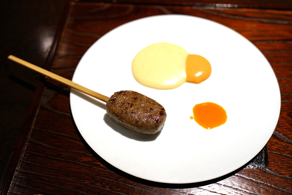 3rd course : Sardine | Shuto [16/20] – ปลาซาร์ดีนปั้นเป็นก้อนกลมคล้ายๆกับลูกชิ้นไก่สึคุเนะย่างบนเตาจนสุกหอมเนื้อนุ่มฉ่ำเสิร์ฟคู่กับซอส shuto ซึ่งเป็นเครื่องในปลาหมักพร้อมด้วยมันฝรั่งพิวรีและน้ำมันพริก
