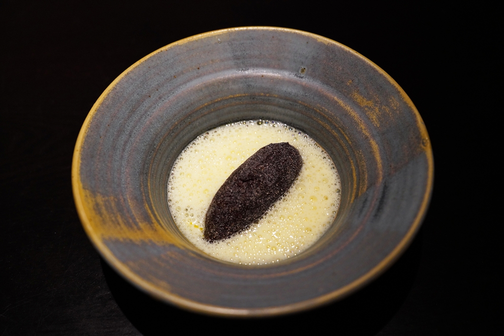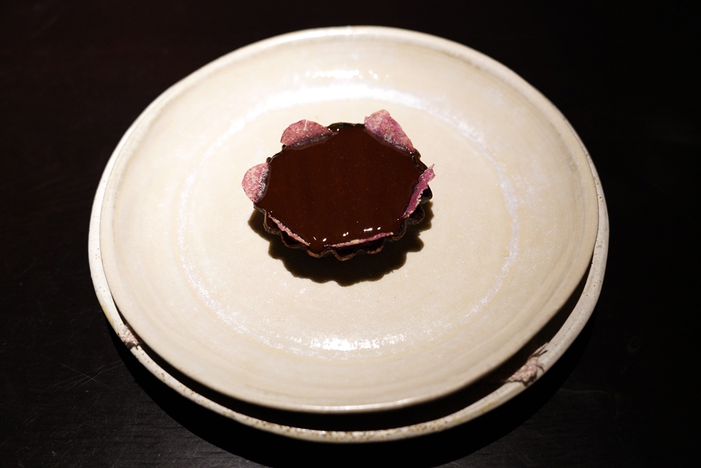 13th course : Dabai chocolate tart, rose fudge, hearts of palm with keluak glaze [18/20] – ทาร์ตที่ทำจากมะกอก dabai ที่สามารถใช้แทนผลโกโก้ได้เสิร์ฟพร้อมกับฟัดจ์ดอกกุหลาบ แกนปาล์มและผล keluak ที่ถือเป็นหนึ่งในขนมหวานที่อร่อยที่สุดเท่าที่ผมเคยทานมาและมีหลากรสมากๆ ทั้งเปรี้ยว หวาน เค็มและหอมสมุนไพร