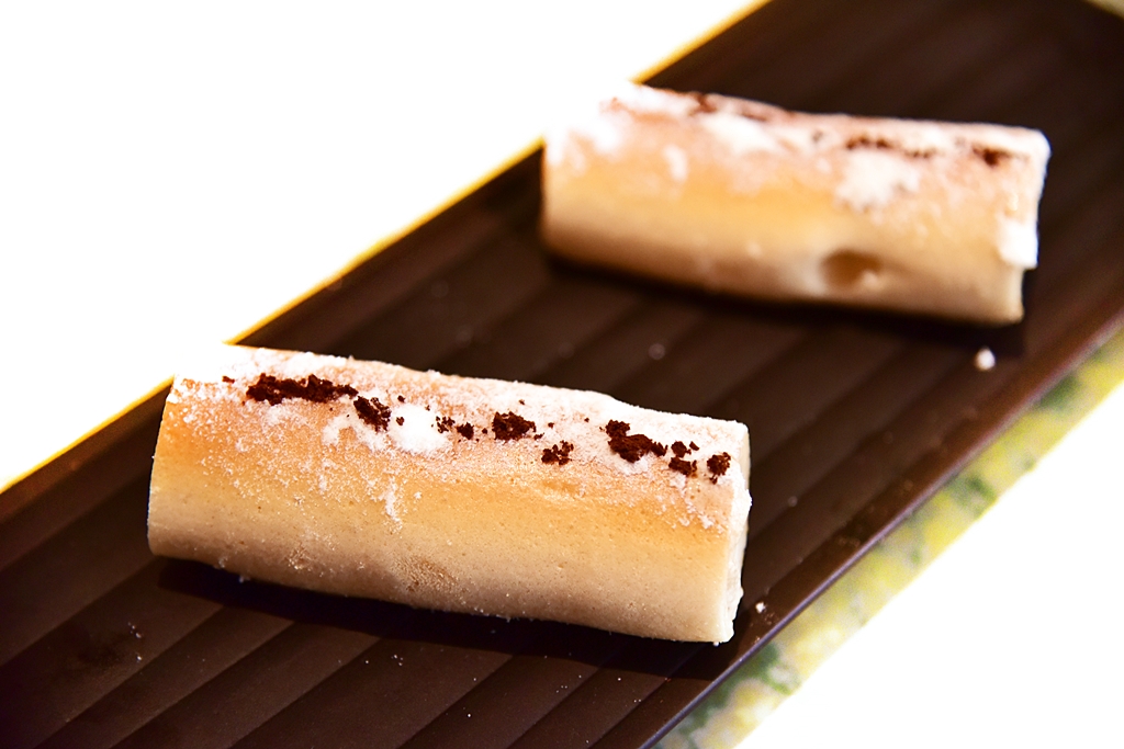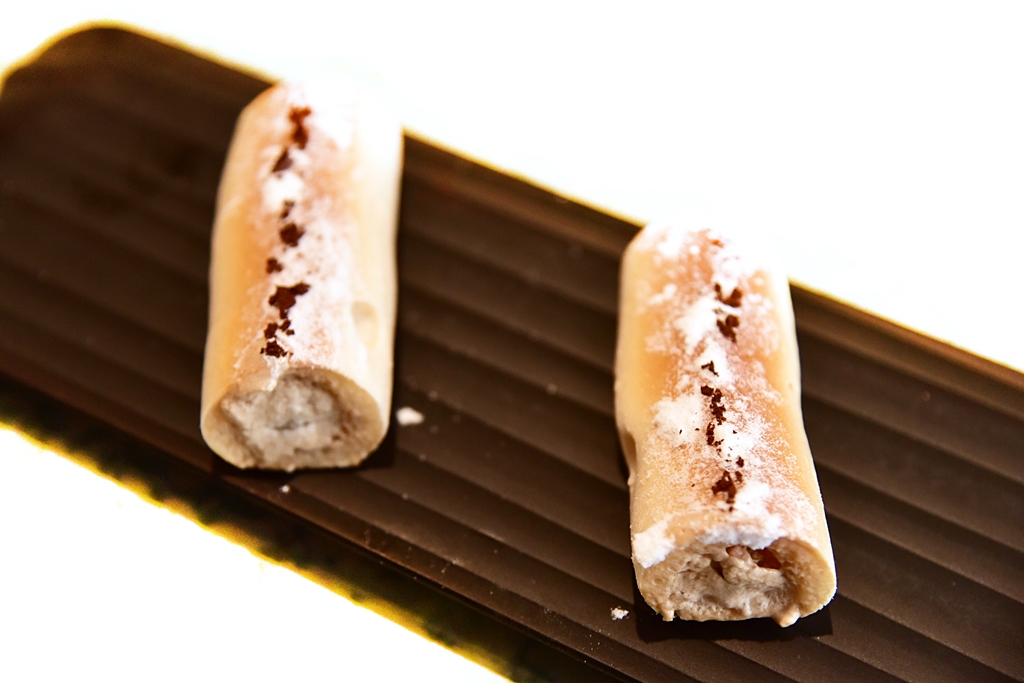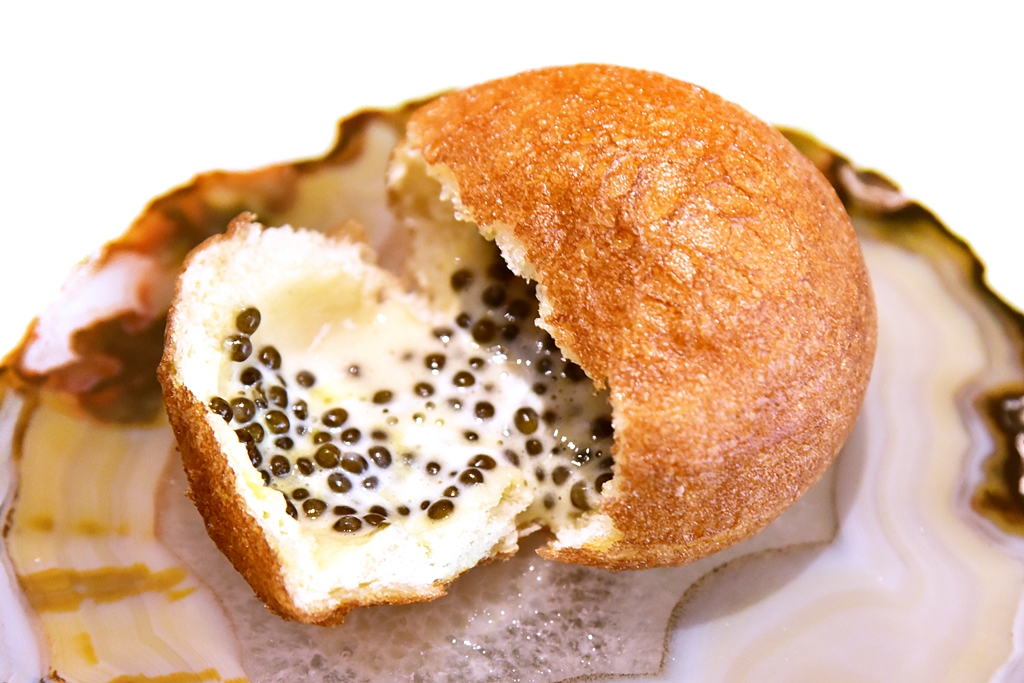 4th course: Panchino filled with Beluga Caviar – ขนมปังแป้งกรอบนอกเนื้อเบานุ่มสไตล์จีนสอดไส้ไข่ปลาคาเวียร์และครีม สั้นๆคือ “โคตรอร่อย” เมนูนี้ขอยกให้เป็นไฮไลต์อันดับหนึ่งของมื้อเลย
