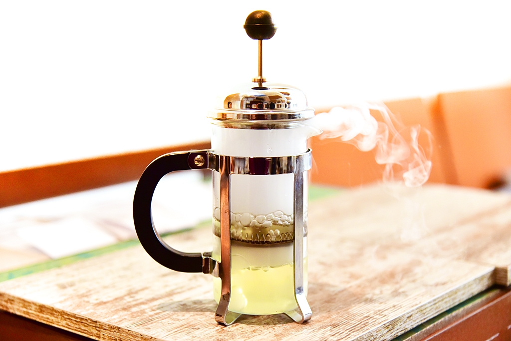 6th course & 7th course: Homemade Cider Smoked at the Moment & Idiazabel Cheese Mille-feuille – แอปเปิ้ลไซเดอร์แบบโฮมเมดที่พนักงานจะนำเสนอวิธีการทำให้ดูตั้งแต่ต้นจนจบเสิร์ฟคู่กับมิลล์เฟยชีสเนื้อเบารสชาติจัดจ้านเข้ากันได้อย่างดีเยี่ยม