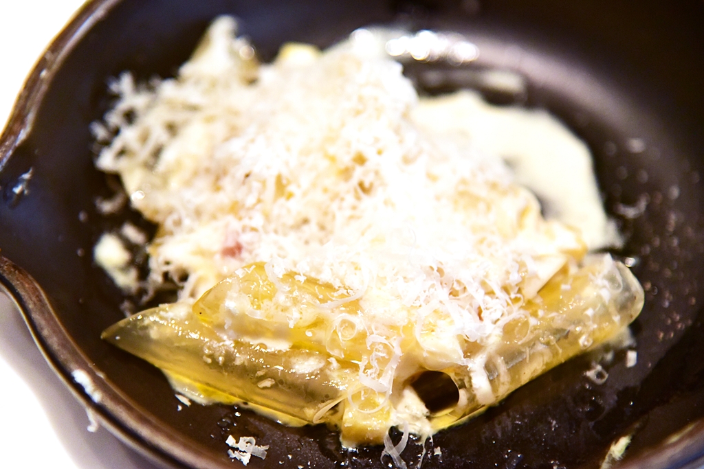 15th course: Macaroni alla Carbonara – คาร์โบนาร่าพาสต้าเส้นใสที่แอบคล้ายๆเส้นเซี่ยงไฮ้ในซอสรสชาติเข้มข้นที่พนักงานจะมาปรุงให้ดูกันข้างโต๊ะเลย