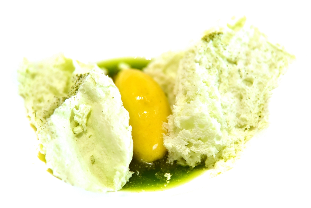 12th course: Deconstructed Ceviche – เซวิชเช่หรือยำปลาดิบสไตล์เปรูที่ได้รับการพลิกแพลงใหม่ให้หน้าตาแปลกไปมากแต่รสชาติยังคงความเปรี้ยวจี๊ดสดชื่นตามสไตล์ได้อย่างดี