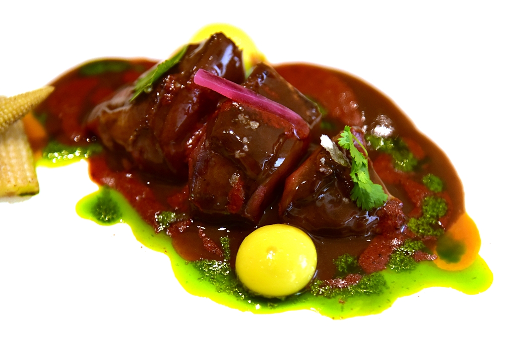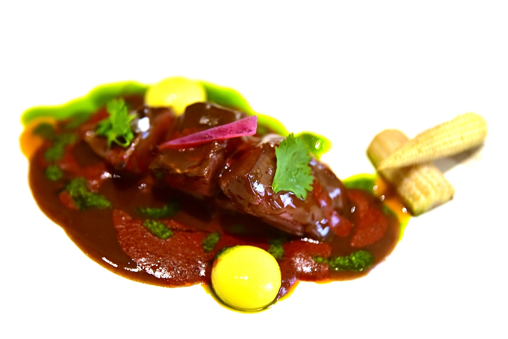 24th course: Pibil Squab – นกพิราบเนื้อนุ่มฉ่ำเสิร์ฟกับซอสหลากชนิดหลารสสัมผัส