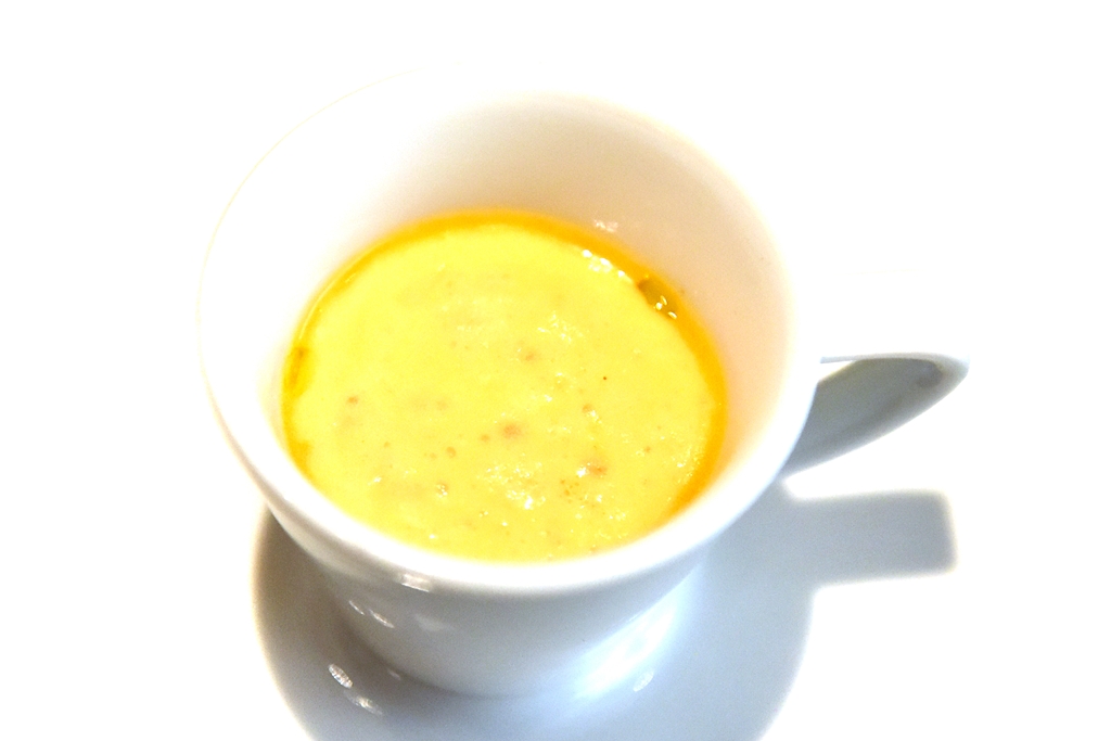 1st course: Frozen Passion Fruit Ladyfinger with Rum – เลดี้ฟิงเกอร์เสาวรสแช่เย็นเนื้อเบานุ่มเติมความเข้มด้วยเหล้ารัม เมนูนี้เหมาะสมกับการเป็นเมนูเรียกน้ำย่อยมากๆ ทานแล้วอยากกินอาหารต่อทันที