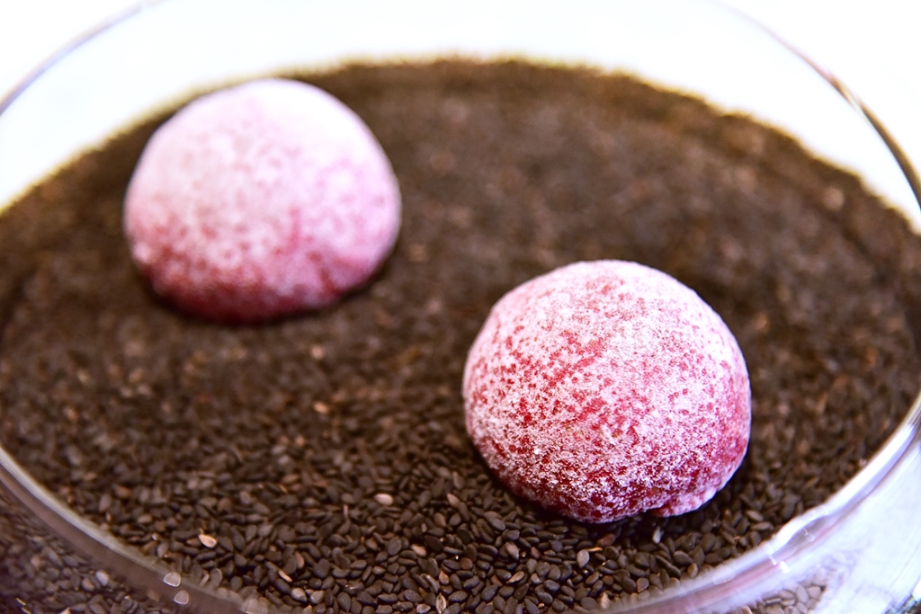3rd course: The Beet that Comes Out of the Land – ขนมอบกรอบรสบีทรูทที่ผุดขึ้นมาจากดิน !! เมนูนี้หน้าตาอาจจะดูเหมือนธรรมดา แต่รสชาตินี่สุดยอดเลย อยากให้ Disfrutar เปิดขายขนมอบกรอบแข่งกับ Lay’s เลยทีเดียว ฮ่าๆ