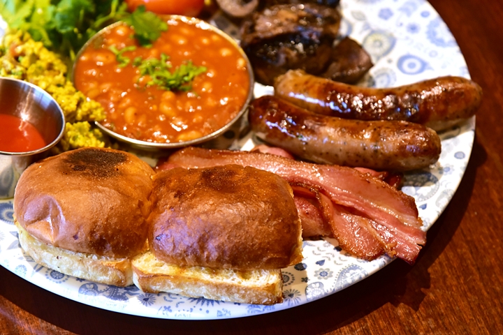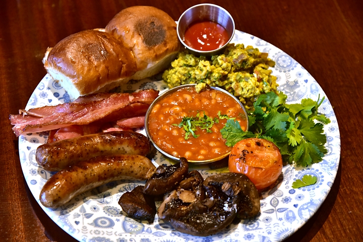 1. The Big Bombay (11.50 GBP) – เซ็ตอาหารเช้าจานยักษ์ที่ประกอบด้วยไส้กรอกหมู เบค่อนย่าง ถั่วอบผสมเครื่องเทศมาซาล่า ไข่คนสไตล์อินเดีย ขนมปัง เห็ดและมะเขือเทศย่าง ขอบอกว่าอร่อยมาก ชอบมาก !!