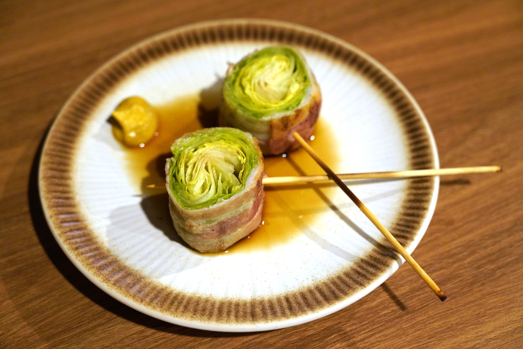 7. Bekon Kyabetsu Yaki (130++ THB) [14/20] – กะหล่ำปลีห่อเบค่อนเสียบไม้ย่าง
