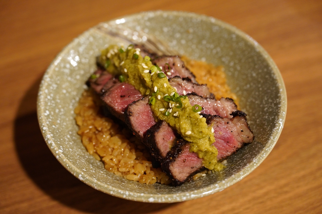 4. Niku Don with Yuzu Kosho (470++ THB) [14/20] – ข้าวผัดกระเทียมหน้าเนื้อสเต็กพิคานย่ากับยูสุโคโชเสิร์ฟคู่กับซุปดาชิ