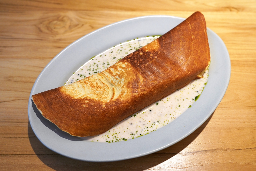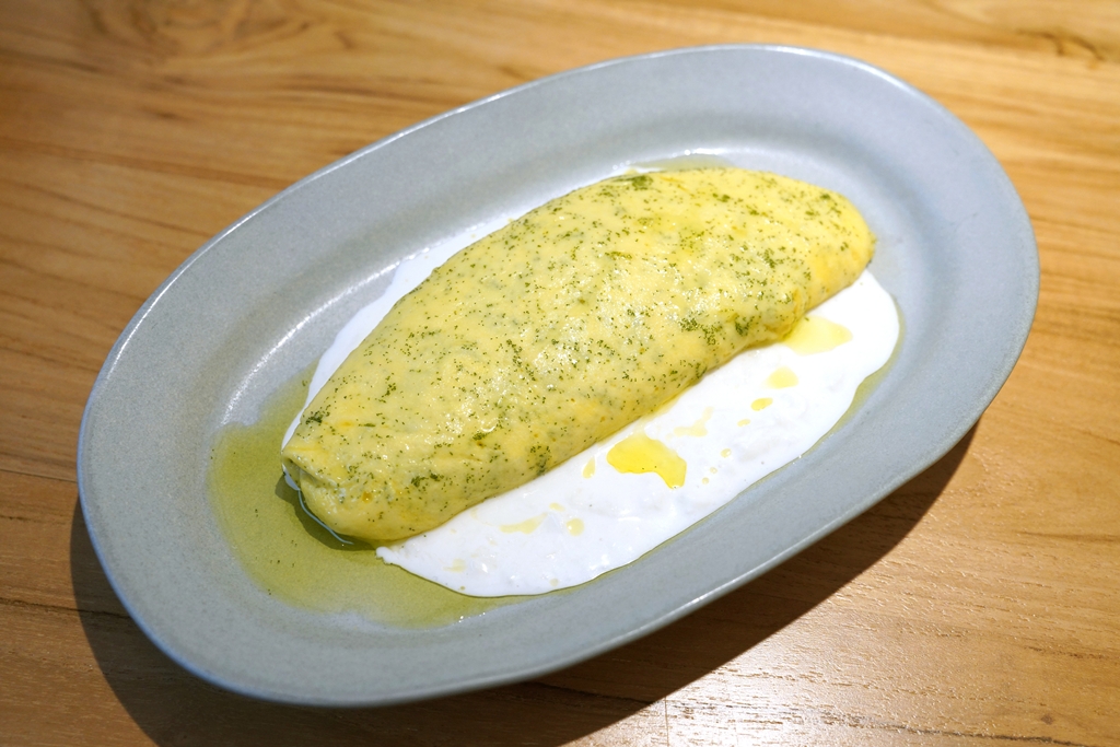 1. Omelette with Wolffia (320++ THB) [15/20] – ไข่ออมเลตเนื้อละมุนที่เติมรสชาติด้วยซุปดาชิและไข่ผำเสิร์ฟกับชีส stracciatella ที่เข้ากันได้ละมุนมาก