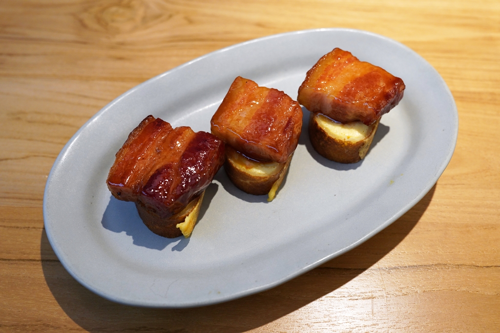 2. Pancake Velvet and Bacon (190++ THB) [15/20] – แพนเค้กสอดไส้ไข่เสิร์ฟกับเบค่อนแผ่นหนาสูตรเด็ดของร้าน Fran’s ที่ทำแบบเป็นชิ้นพอดีคำ