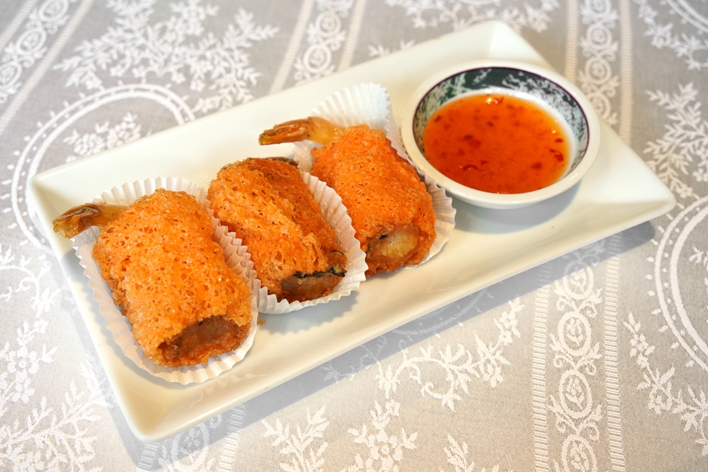 1. Bird’s Nest Spring Rolls with Shrimp (90++ THB) [14/20] – ปอเปี๊ยะรังนกทอดไส้กุ้ง