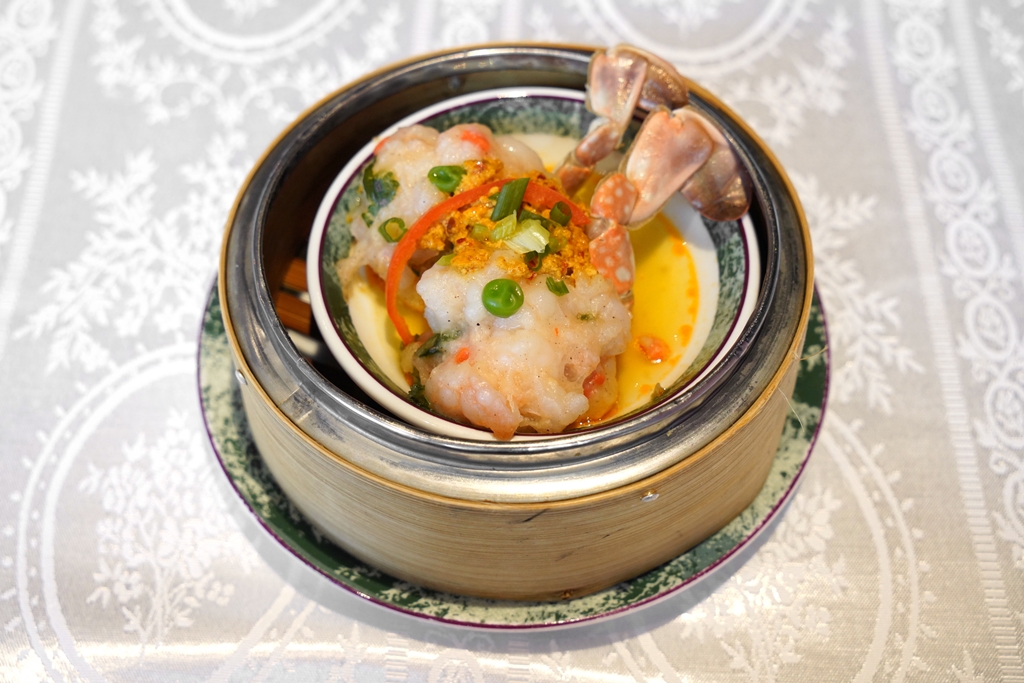 9. Steamed Blue Crab Claws (90++ THB) [15/20] – กรรเชียงปูนึ่งห่อด้วยเนื้อกุ้งทรงเครื่องหน้าผัดผงกะหรี่